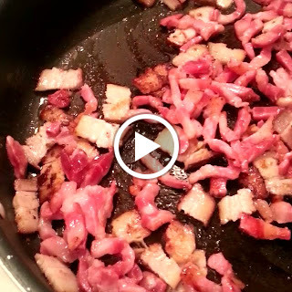 Rendering down the pancetta and bacon